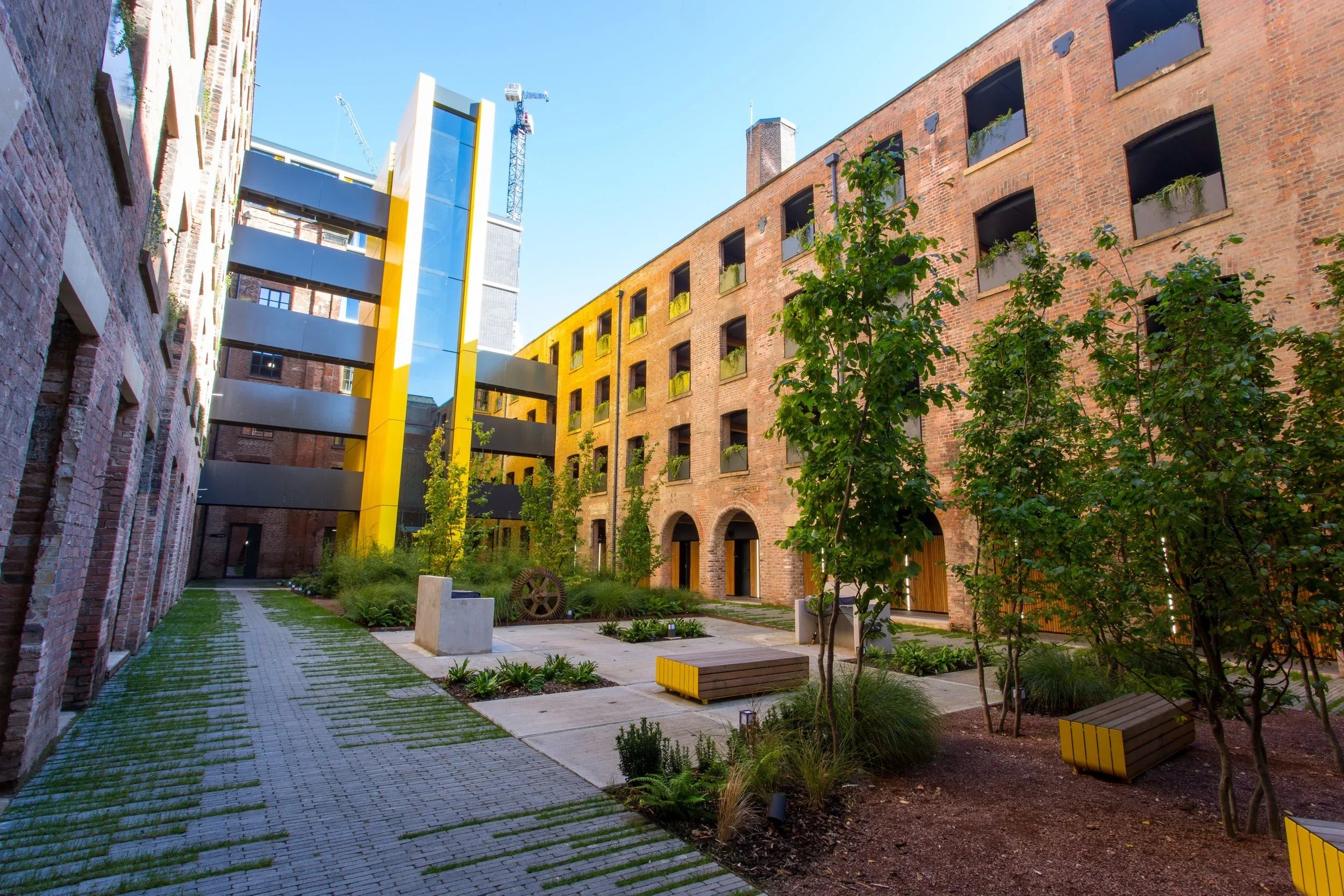 We are converting this former industrial warehouse on the edge of Manchester city centre into residential apartments. The site’s industrial character has informed the design, with architectural proposals featuring the creation of internal walkways, effectively cloisters, facing onto a central courtyard.